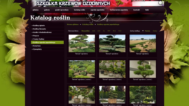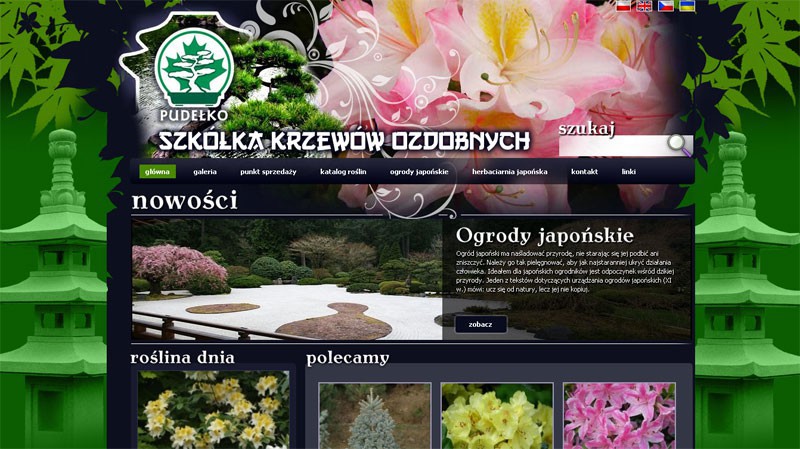 Strona internetowa z systemem zarządzania treścią (CMS) wraz z rozbudowanym katalogiem produktów dla Szkółki krzewów w kilku wersjach językowych.