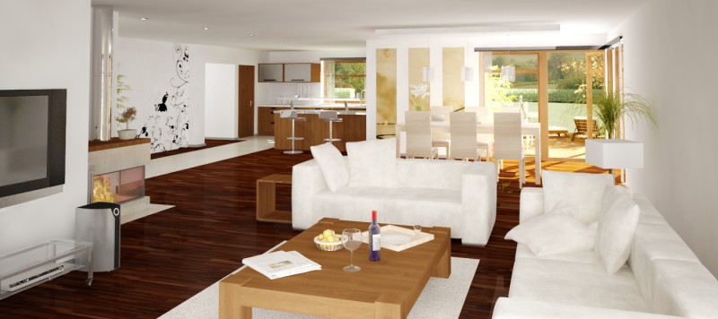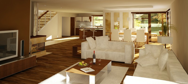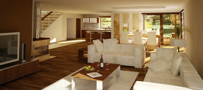 Wizualizacje 3d wnętrza parteru domu jednorodzinnego