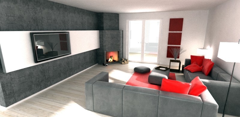 Wizualizacja 3d salonu w domu jednorodzinnym