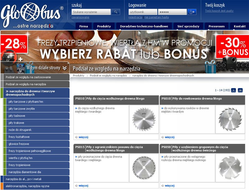 Wielojęzyczny system internetowy firmy produkującej narzędzia wraz ze sprzedażą online.