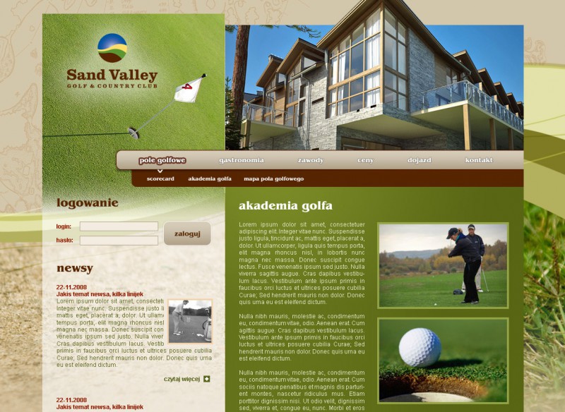 Projekt graficzny strony internetowej klubu golfowego