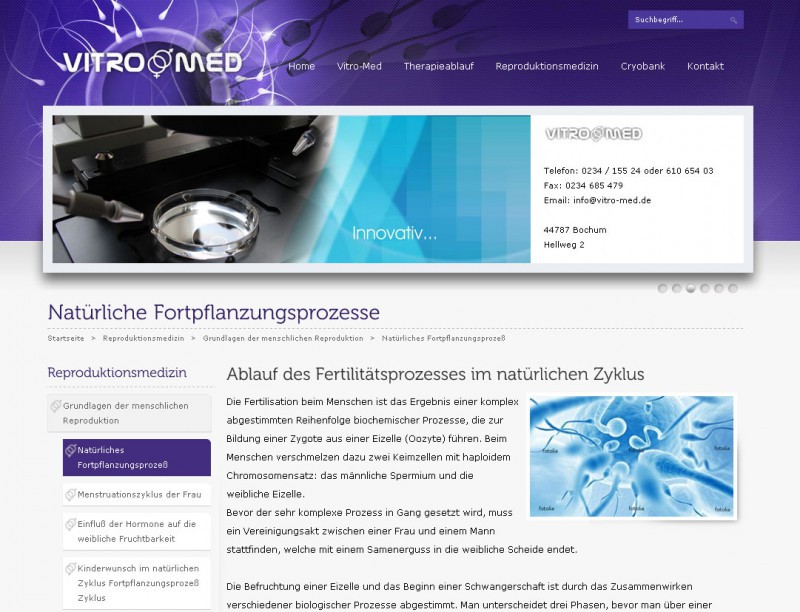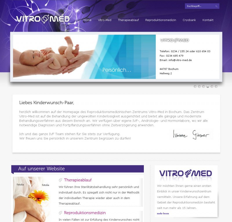 Strona internetowa CMS dla niemieckiej Kliniki Leczenia Niepłodności. W realizacji tej wykorzystano szereg elementów dynamicznych, animacje Flash, filmy. Opracowano rozmieszczenie wszystkich elementów, treści aby zachować intuicyjność. Strona www została wykonana całkowicie w języku niemieckim.