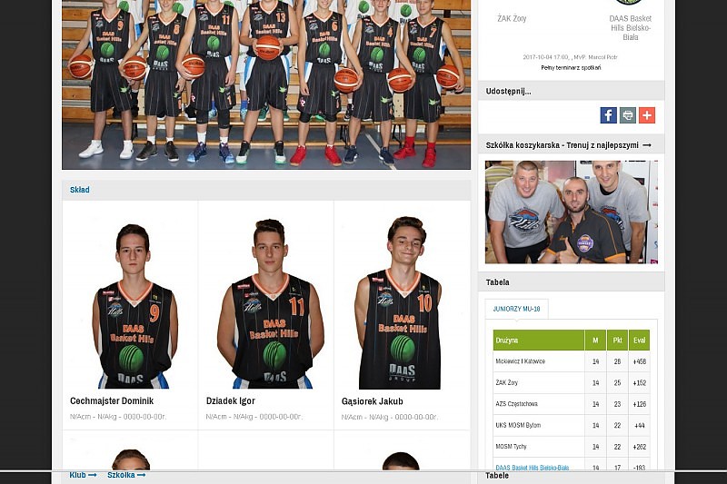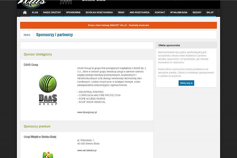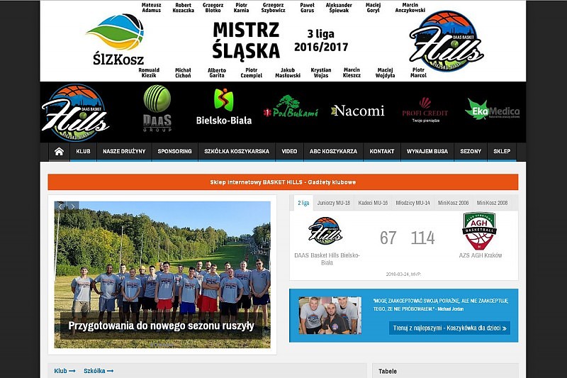 Strona internetowa dla klubu sportowego Basket-Hills